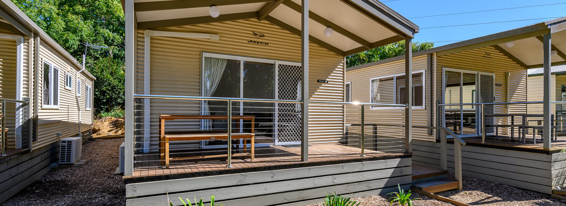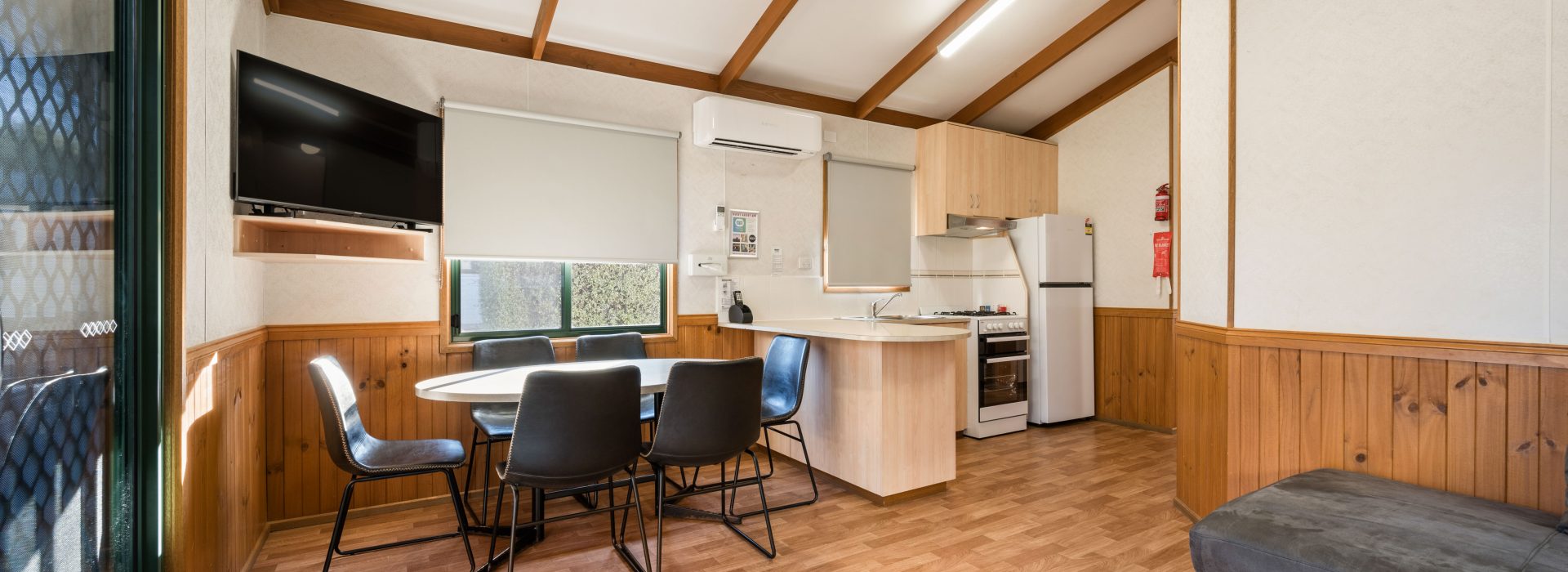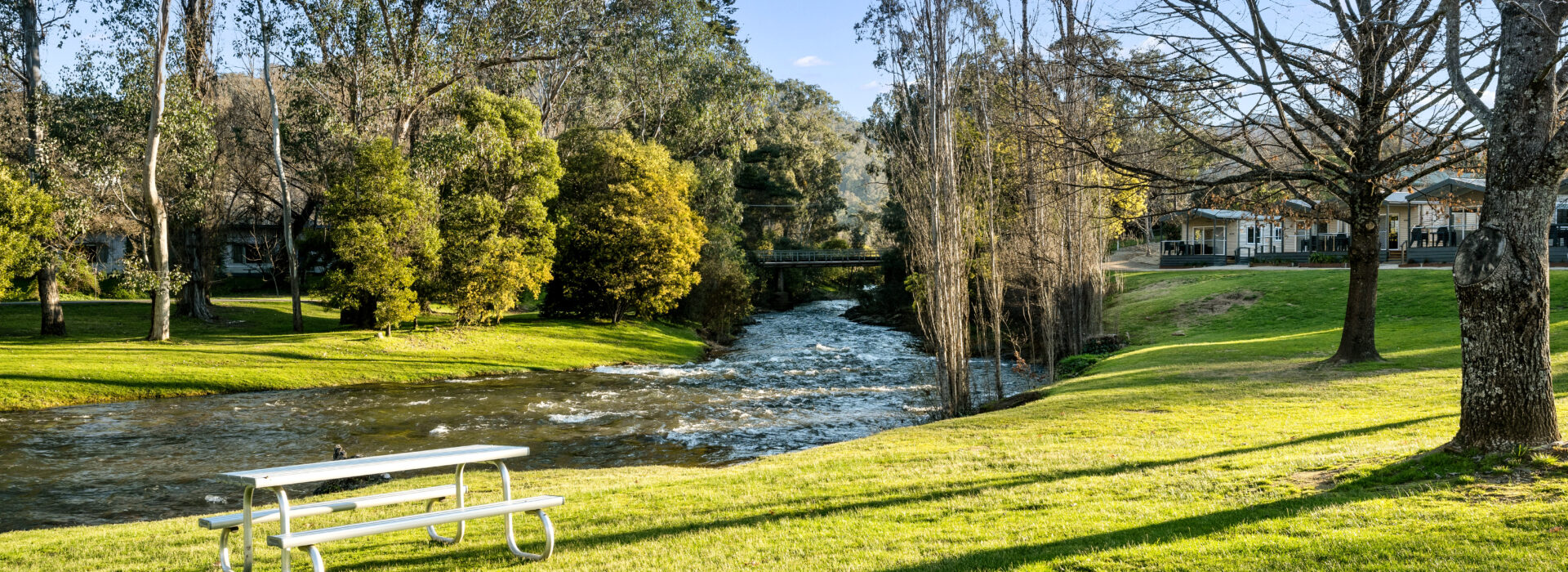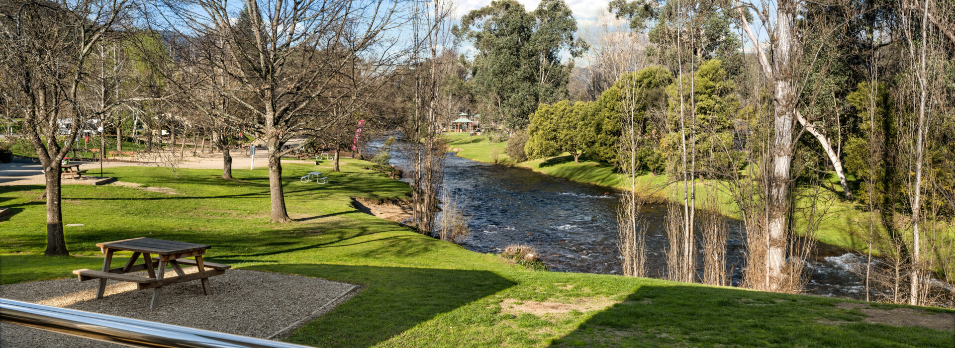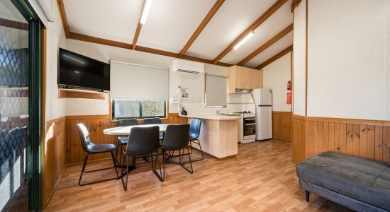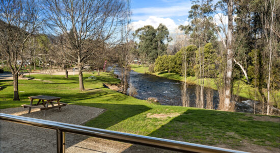 Our villas are all located right on the Ovens River and you can sit back relax and enjoy the stunning views from your balcony. The main bedroom has a queen bed and the 2nd and 3rd bedroom layouts vary. All bedding and towels are provided on all beds in the villa. The kitchen is equipped with all your essentials including a fridge, microwave, hotplates, grill, kettle, toaster, electric frypan, and utensils. Relax in comfort in the living area with a reverse cycle air conditioner unit, lounge chair, dining set, and TV.