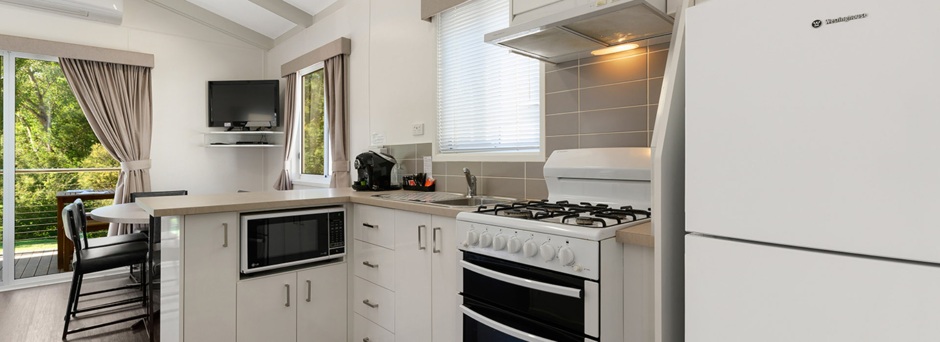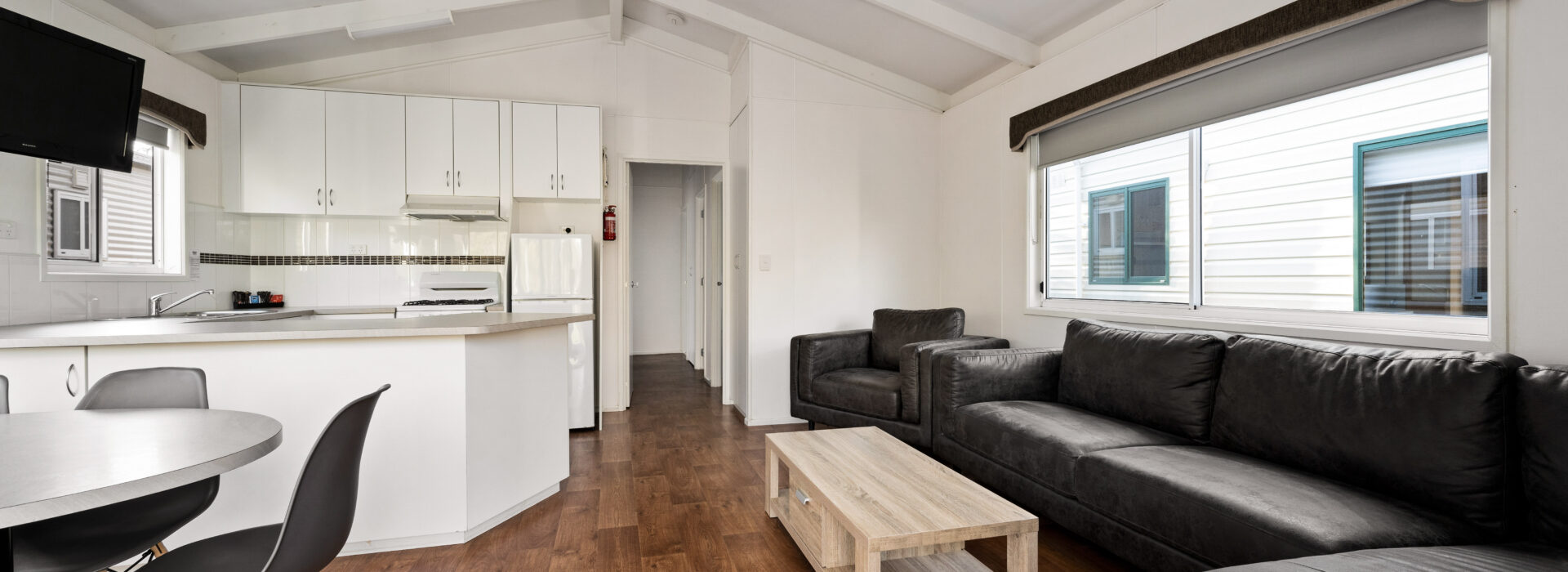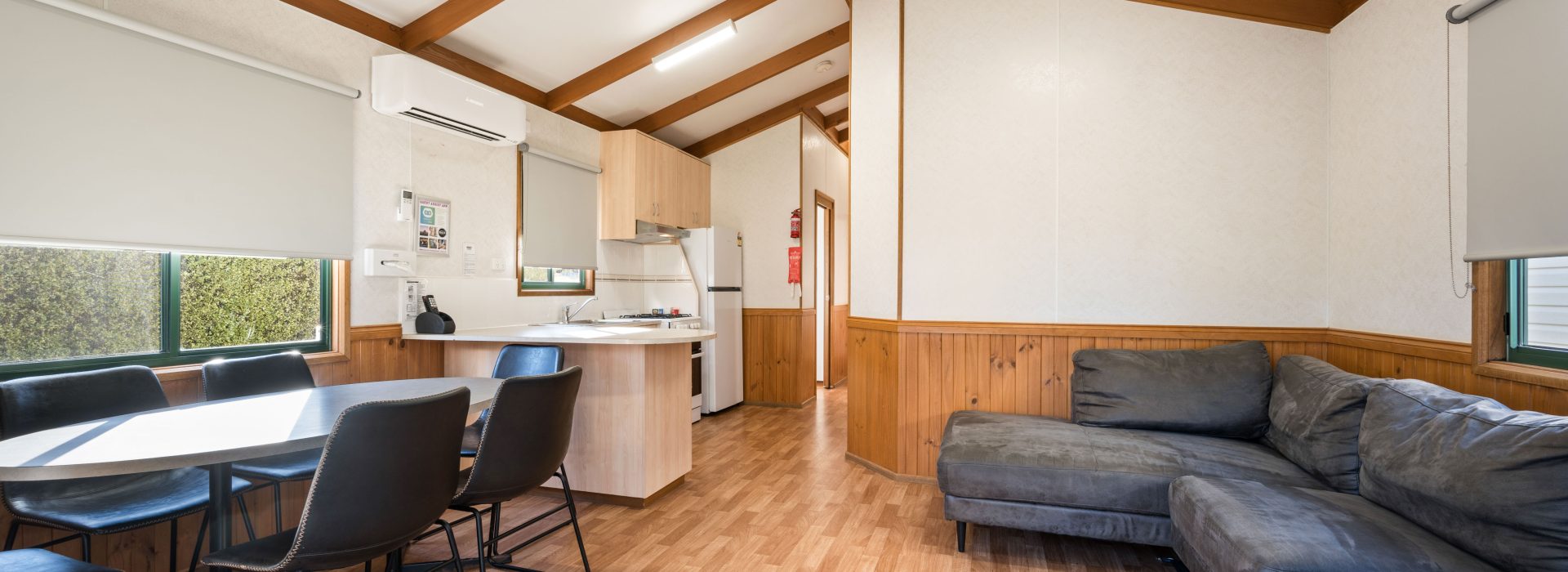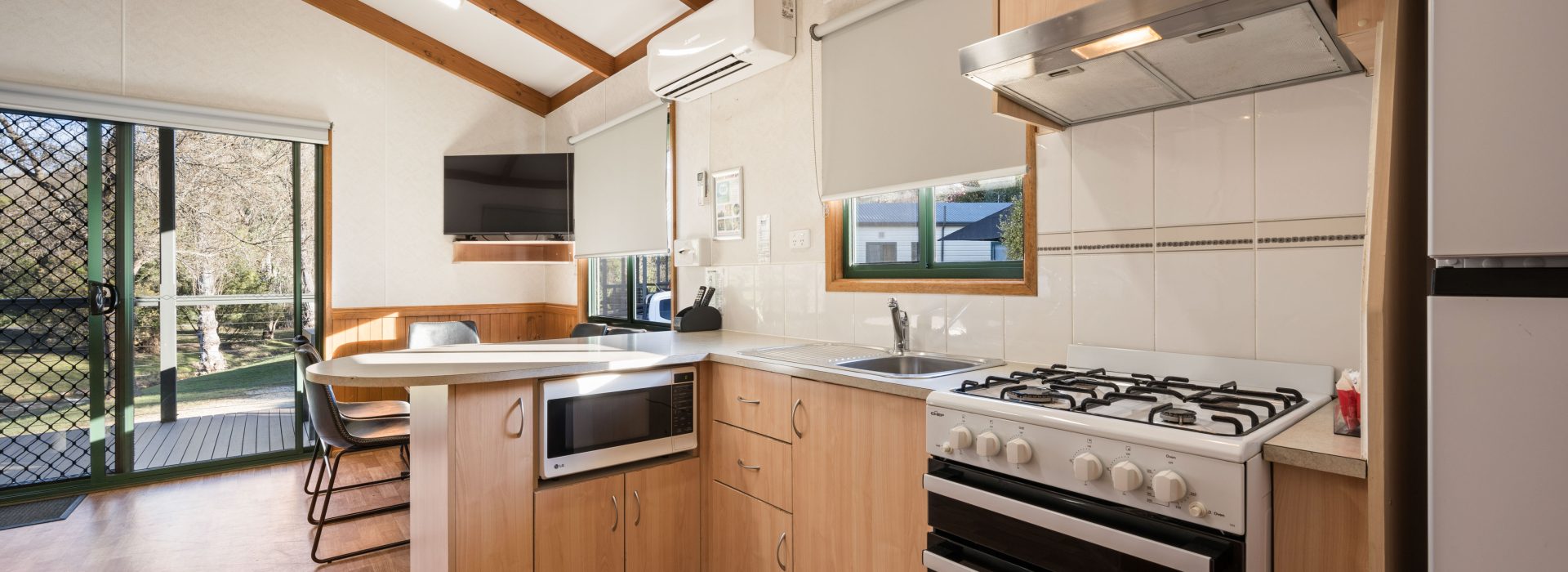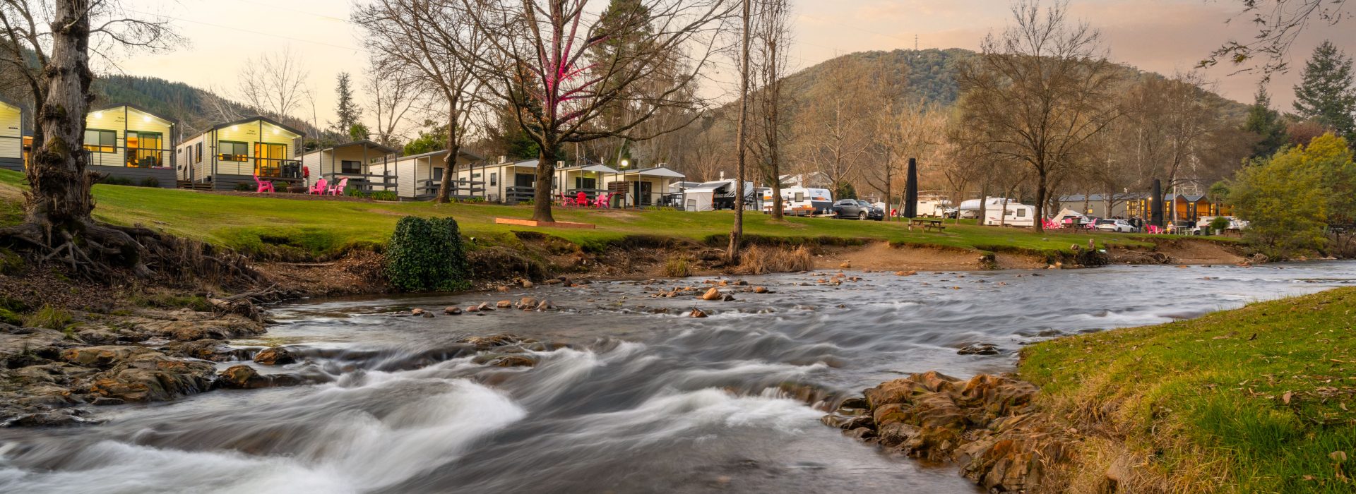 Our villas are all located right on the Ovens River and you can sit back relax and enjoy the stunning views from your balcony. The main bedroom has a queen bed and the 2nd and 3rd bedroom layouts vary. All bedding and towels are provided on all beds in the villa. The kitchen is equipped with all your essentials including a fridge, microwave, hotplates, grill, kettle, toaster, electric frypan, and utensils. Relax in comfort in the living area with a reverse cycle air conditioner unit, lounge chair, dining set, and TV.